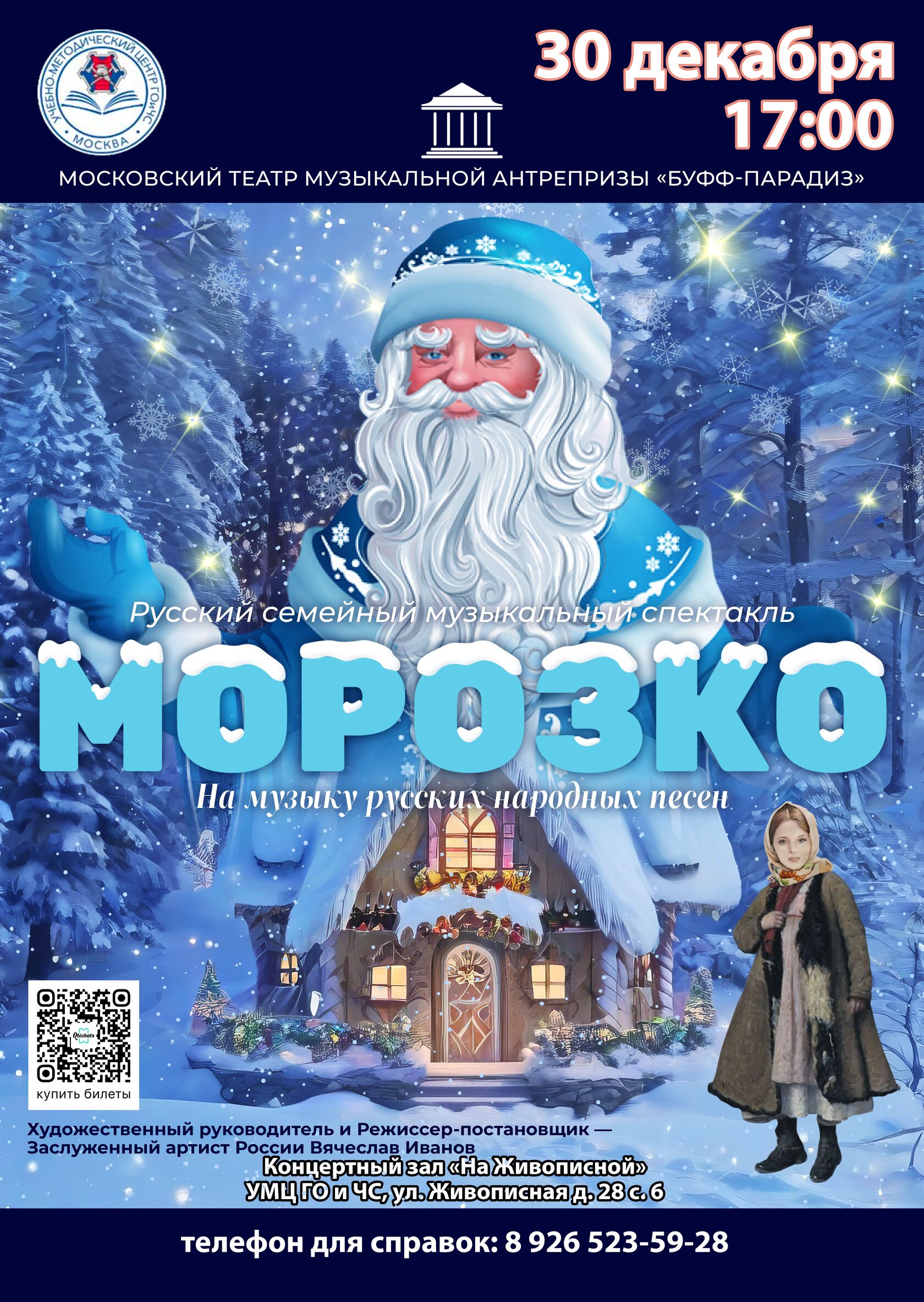 Русская народная сказка — это окно, через которое душа ребенка смотрит в мир. Не только ум, но и сердце маленького человека нуждается в воспитании. Наша сказка «Морозко» одна из многочисленных вариаций известного сюжета. В ней отражена вся гениальная народная воспитательная мудрость! Простой и понятный сюжет, известные сказочные герои, доходчивый язык, краски народного быта, все это в игровой форме учит ребенка понимать - что такое справедливость, трудолюбие, храбрость, доброе сердце и отвага, в чем сила дружбы и любви. В спектакле много народной музыки, живой звук, великолепные русские народные костюмы, танцы, сражения, превращения, волшебство-все то, за что мы так любим сказки!
