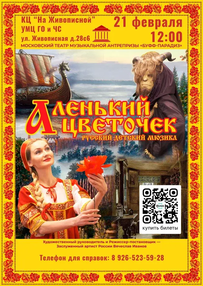 Вот уже 200 лет сказка Сергея Аксакова Аленький цветочек учит простым и важным вещам: что любовь – главное богатство человека, его самое большое украшение и сила! Доброта, чуткость, преданность и смелость способны совершать настоящие чудеса! Невероятно красивый язык сказки и музыка великих композиторов П.И. Чайковского и А.П. Бородина и русские народные песни, делают мюзикл Аленький цветочек спектаклем, который воспитывает в детях всё самое светлое и доброе, чего так не хватает сегодня!